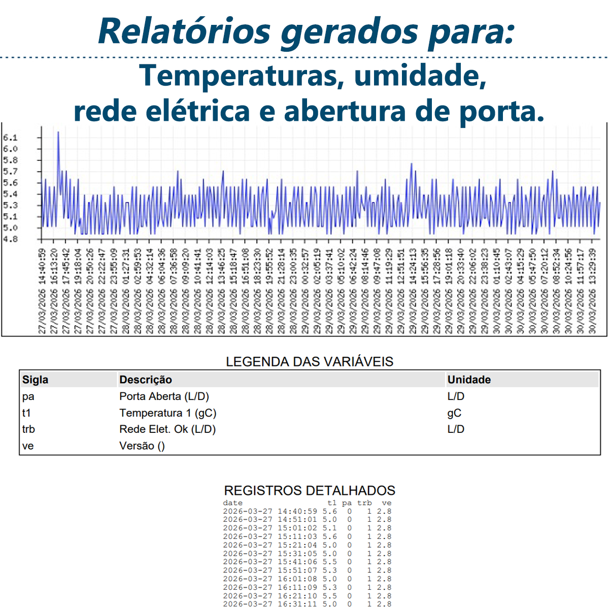 relatórios detalhados para análise. Mantenha um histórico completo das condições ambientais para fins de monitoramento e conformidade.